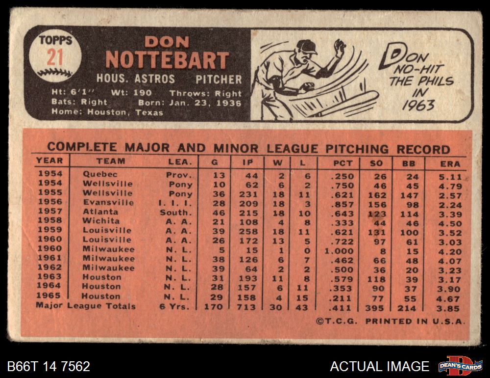 1966 Topps #21 Don Nottebart 1.5 - FAIR