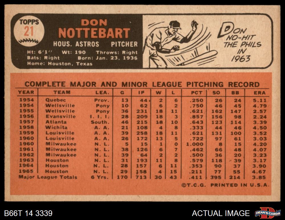 1966 Topps #21 Don Nottebart 5 - EX