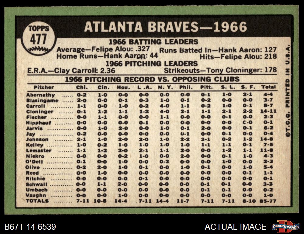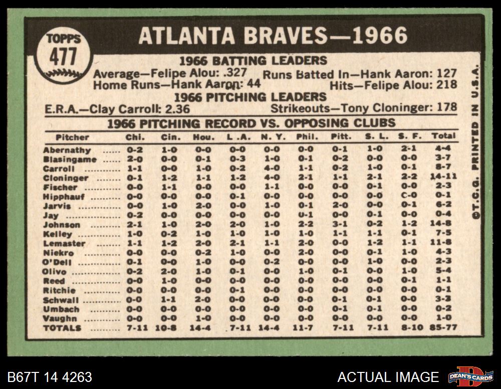 1967 Topps #477 Braves Team