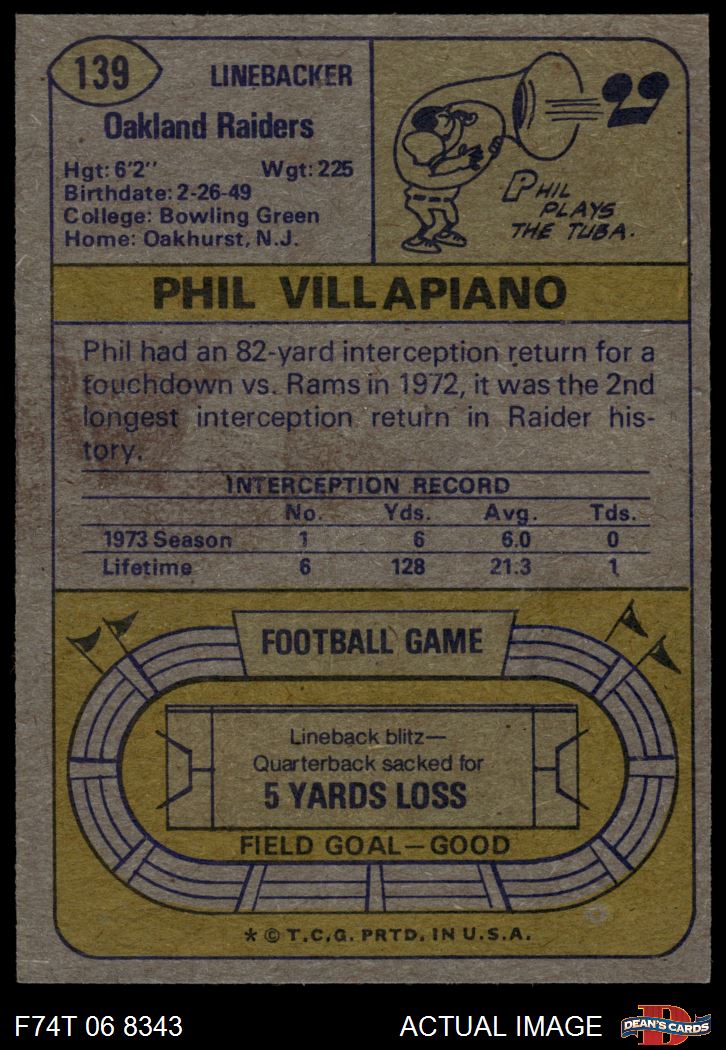1974 Topps #139 - Phil Villapiano All-Pro 5 - EX