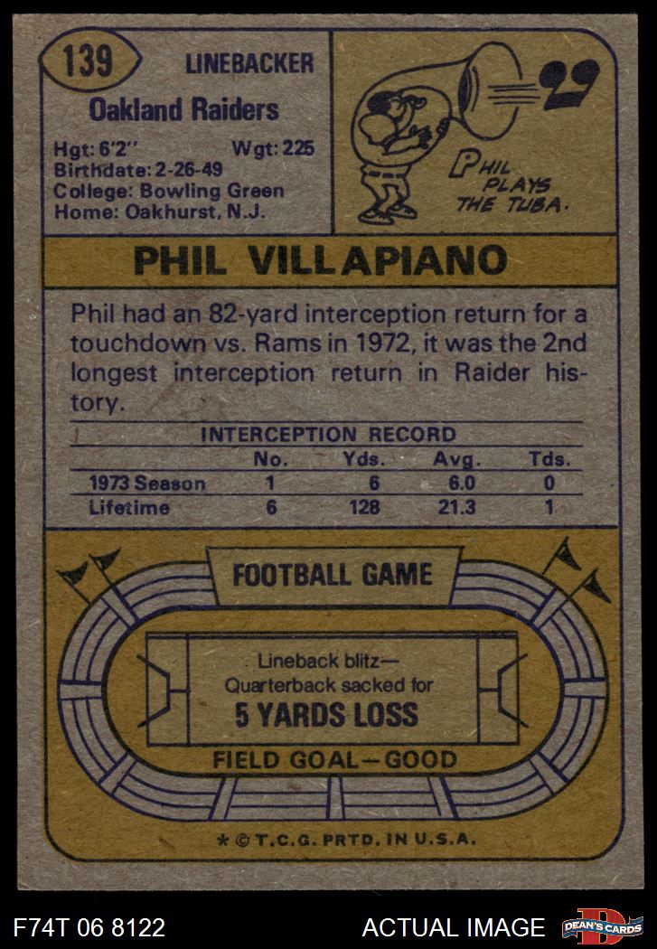 1974 Topps #139 - Phil Villapiano All-Pro 6 - EX/MT