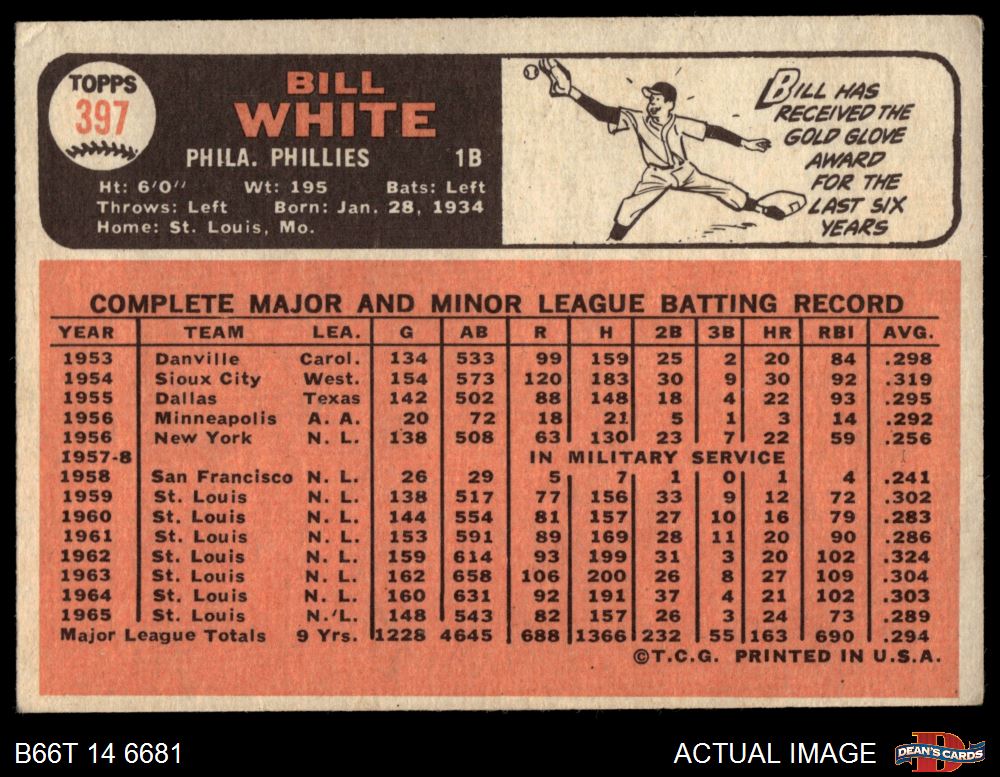 1966 Topps #397 Bill White 2.5 - GD+