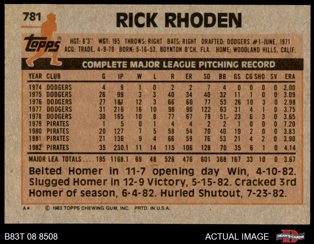 1983 Topps #781 Rick Rhoden 8 - NM/MT