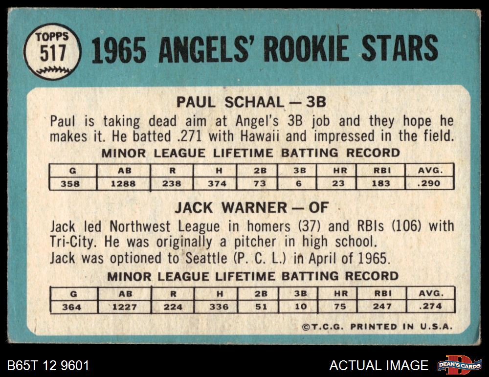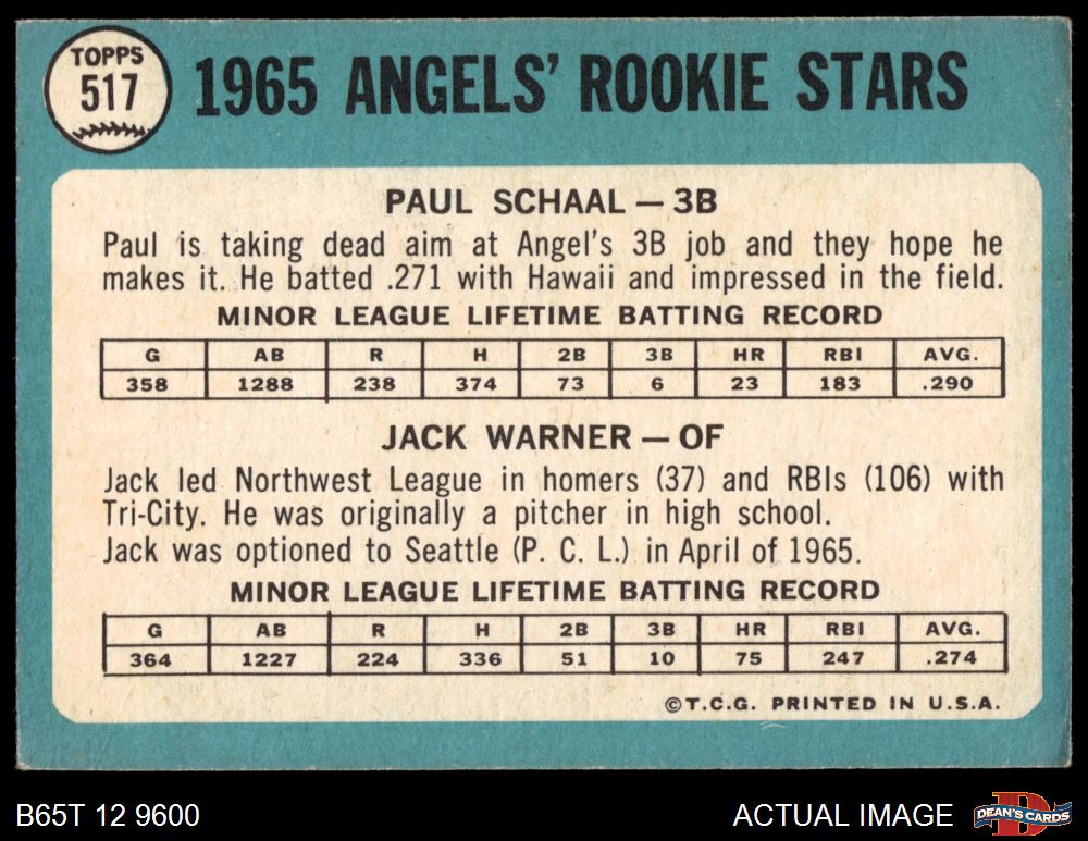 1965 Topps #517 - Paul Schaal / Jack Warner Angels Rookies 3 - VG