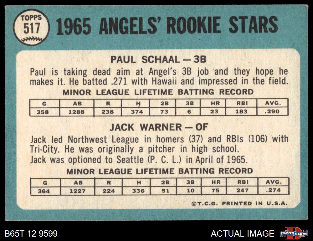 1965 Topps #517 - Paul Schaal / Jack Warner Angels Rookies 4.5 - VG/EX+