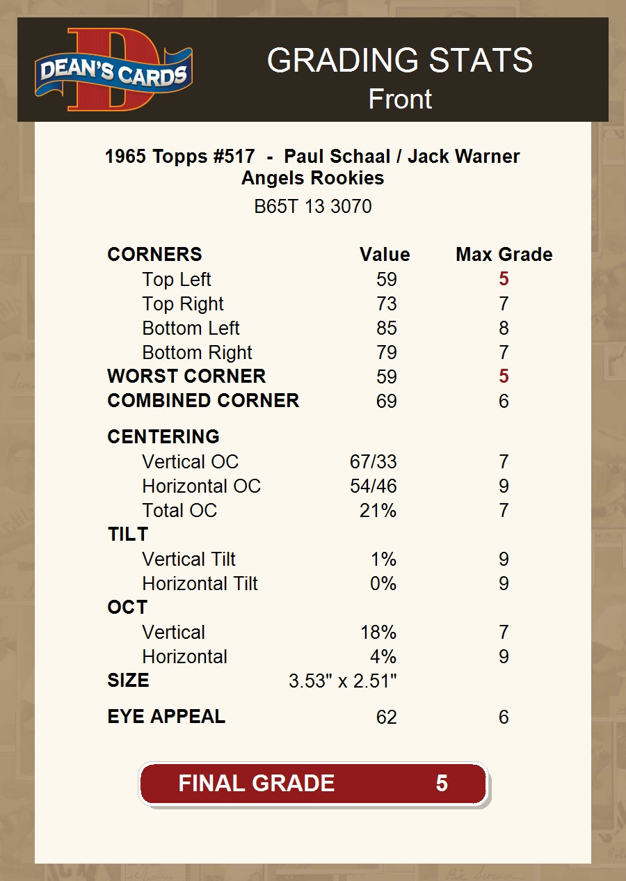 1965 Topps #517 - Paul Schaal / Jack Warner Angels Rookies 5 - EX