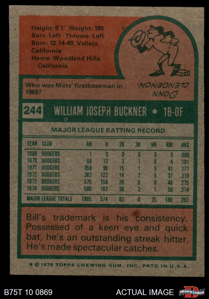 1975 Topps #244 Bill Buckner 7 - NM