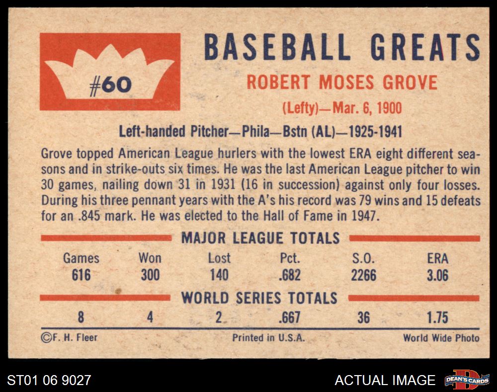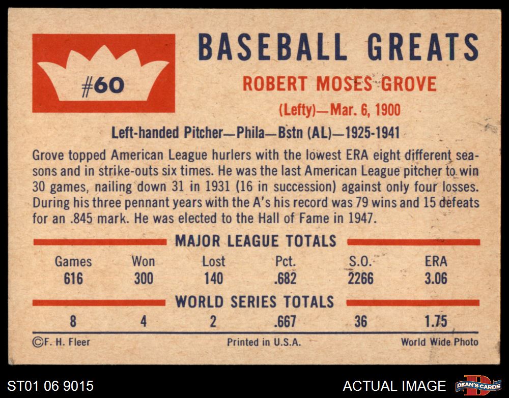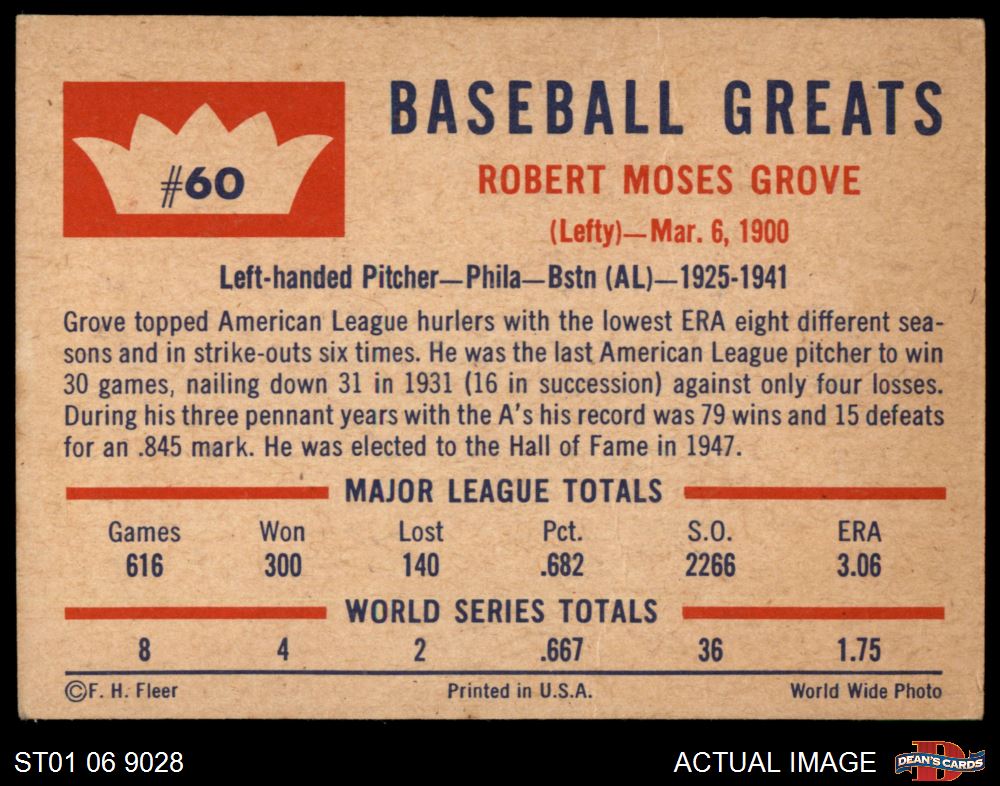 1960 Fleer #60 Lefty Grove