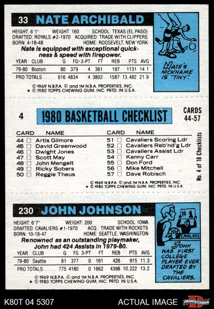 1980 Topps - John Johnson / Walter Davis / Nate Archibald 230 / 4 / 33 7 - NM
