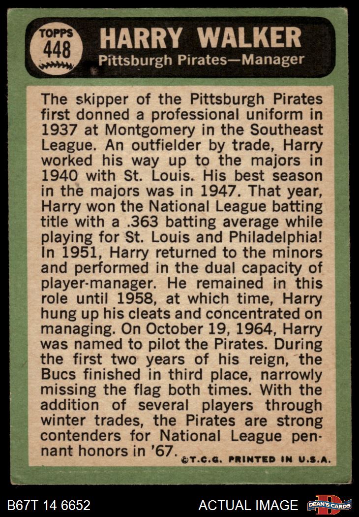 1967 Topps #448 Harry Walker 2.5 - GD+