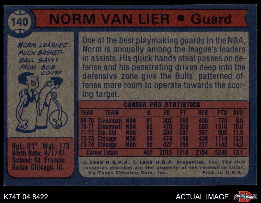 1974 Topps #140 Norm Van Lier 4 - VG/EX
