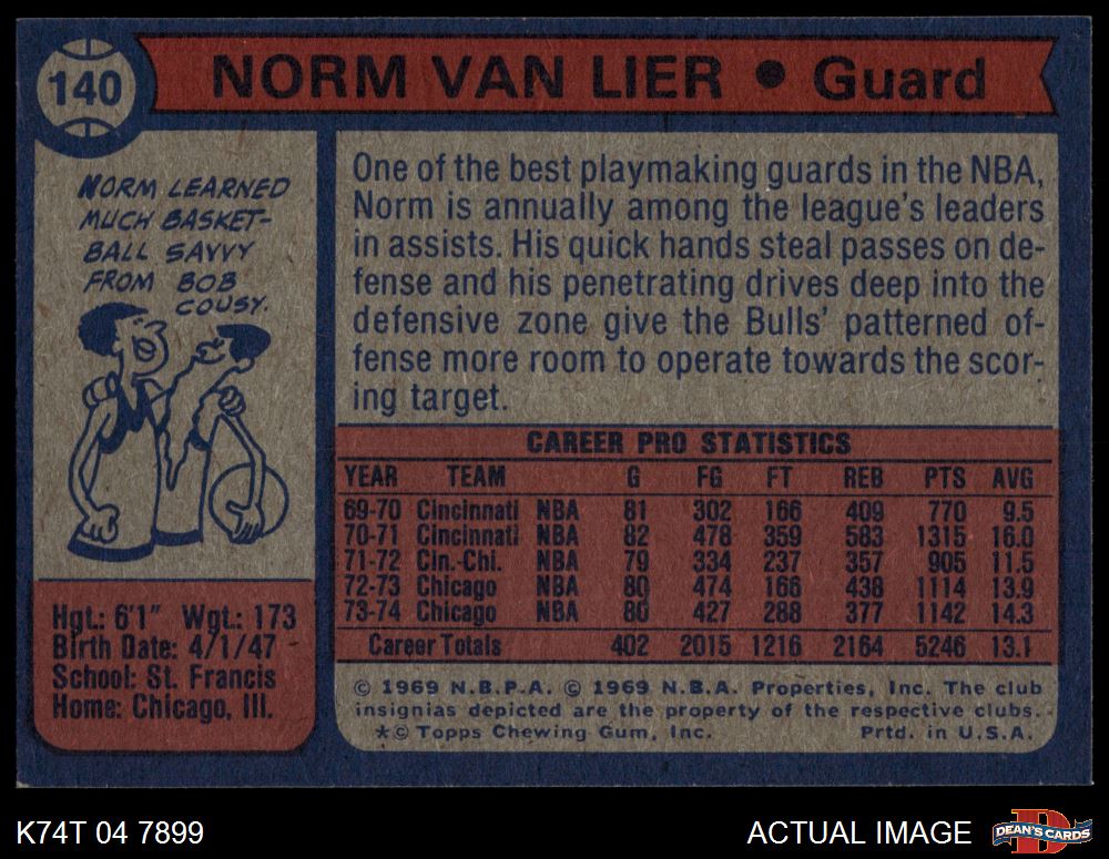 1974 Topps #140 Norm Van Lier 6 - EX/MT