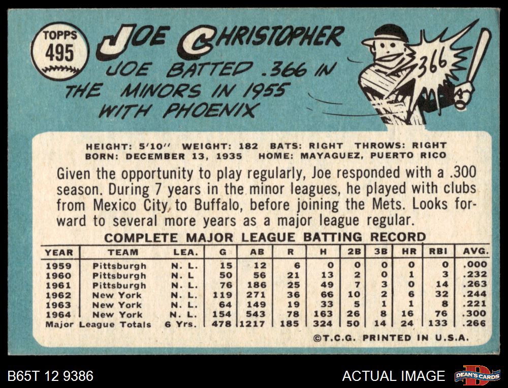 1965 Topps #495 Joe Christopher 4 - VG/EX