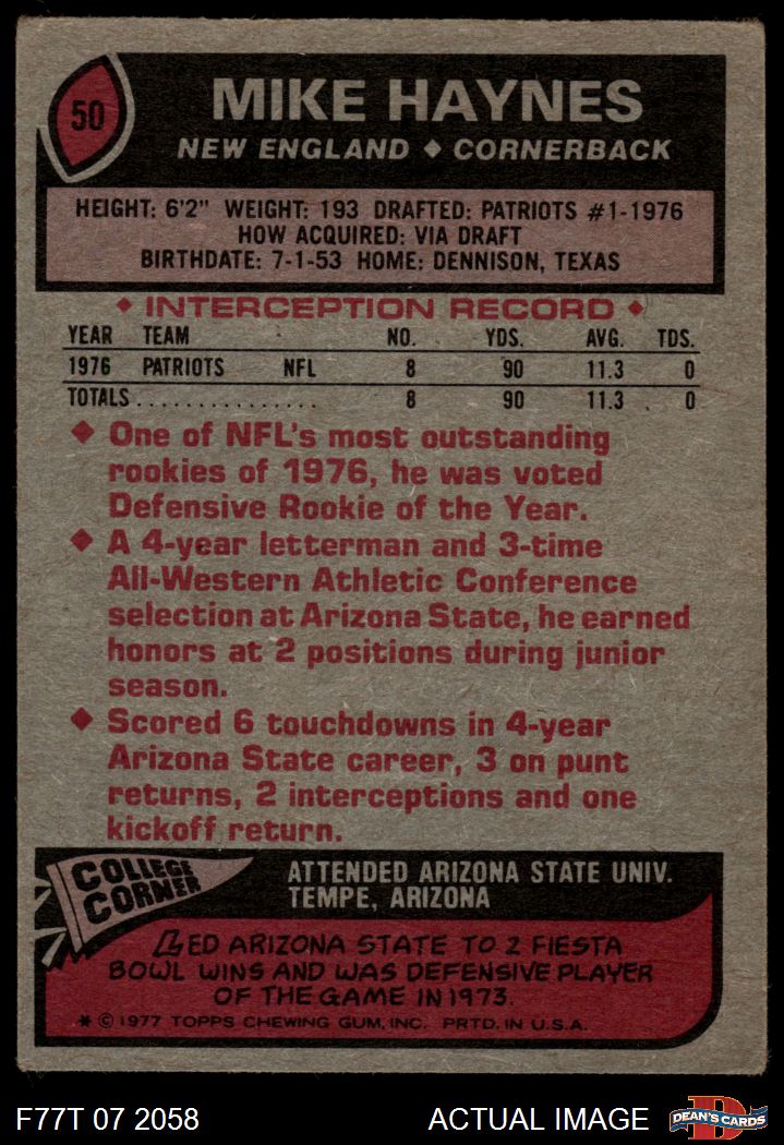 1977 Topps #50 Mike Haynes 1 - POOR