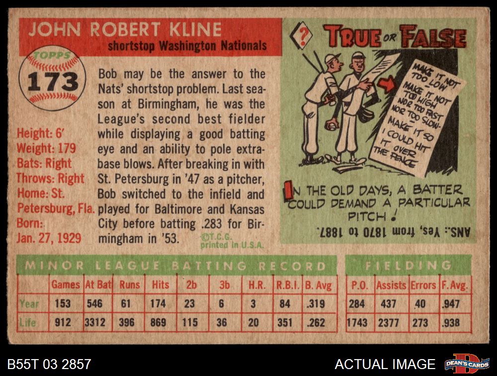 1955 Topps #173 Bob Kline 3.5 - VG+