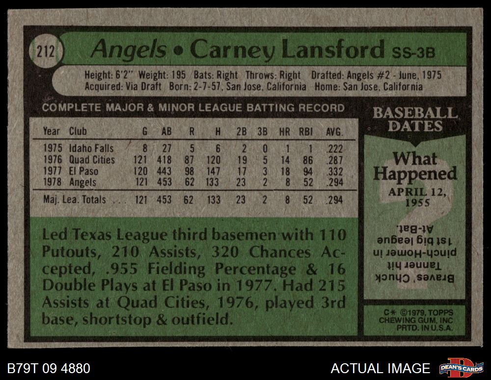 1979 Topps #212 Carney Lansford 4 - VG/EX