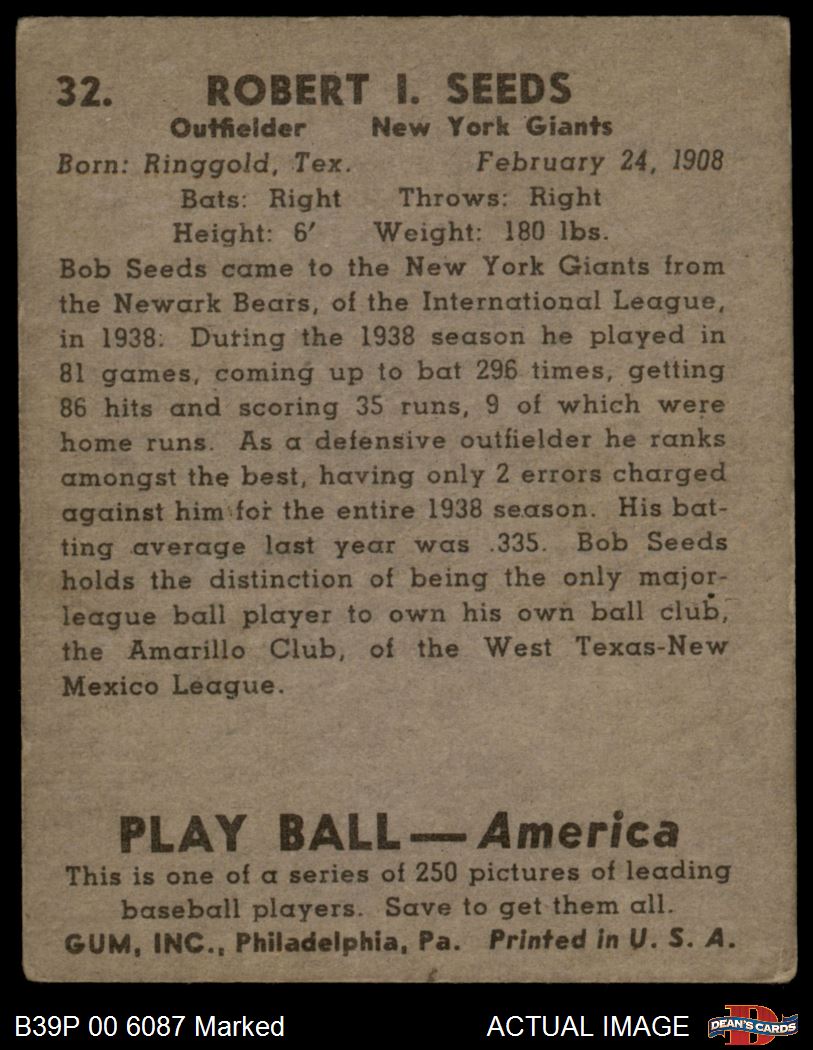1939 Play Ball #32 Bob Seeds 1 - POOR