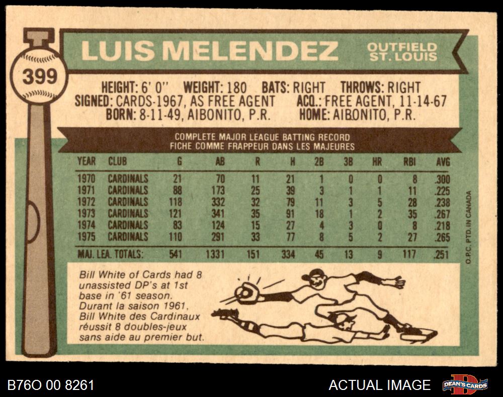 1976 O-Pee-Chee #399 Luis Melendez 7 - NM