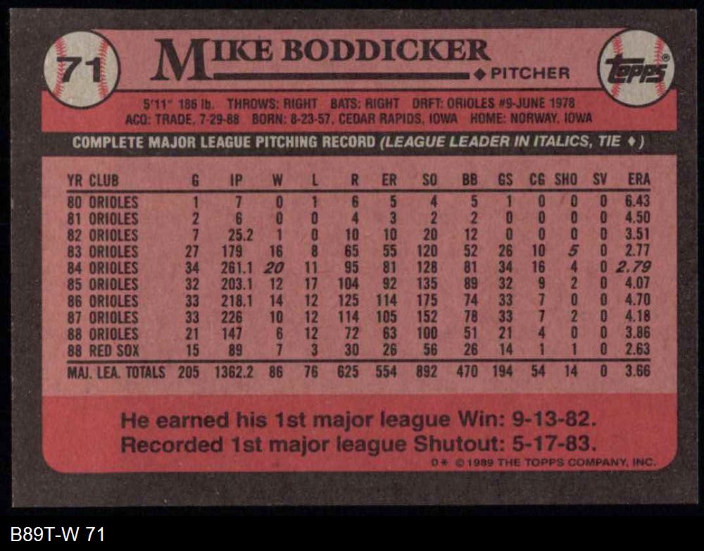 1989 Topps #71 Mike Boddicker