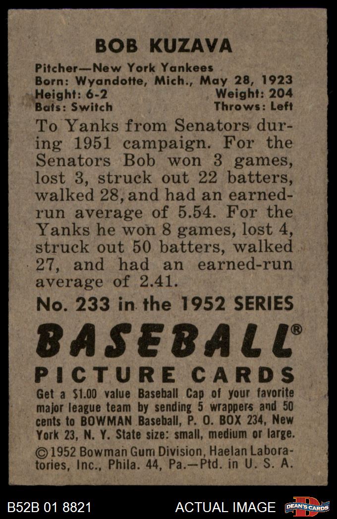 1952 Bowman #233 Bob Kuzava 4 - VG/EX