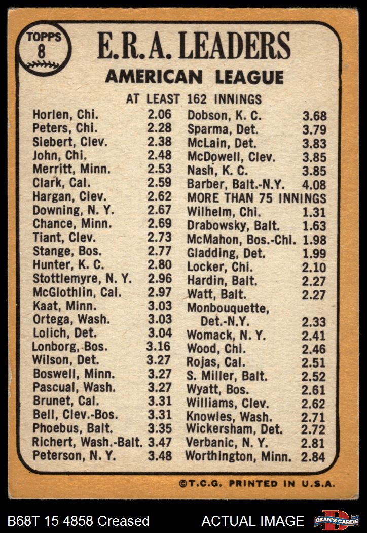 1968 Topps Baseball Cards (12,530 available)1968 Topps White Sox / Indians (57 available)
