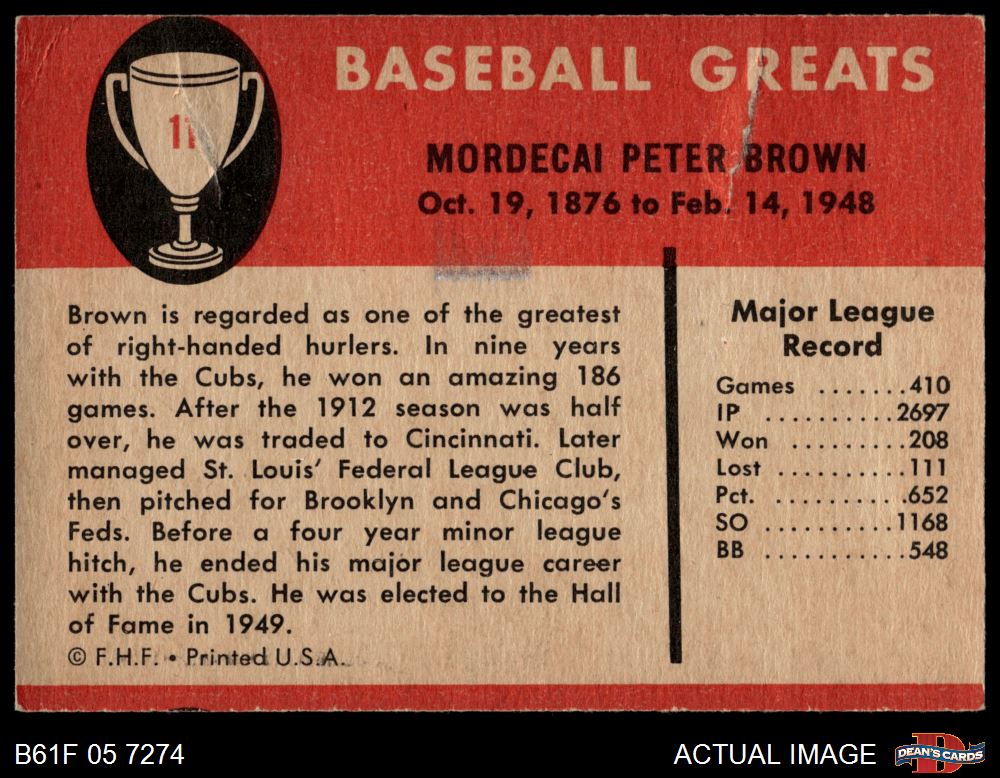 1961 Fleer #11 Mordecai Brown 1 - POOR