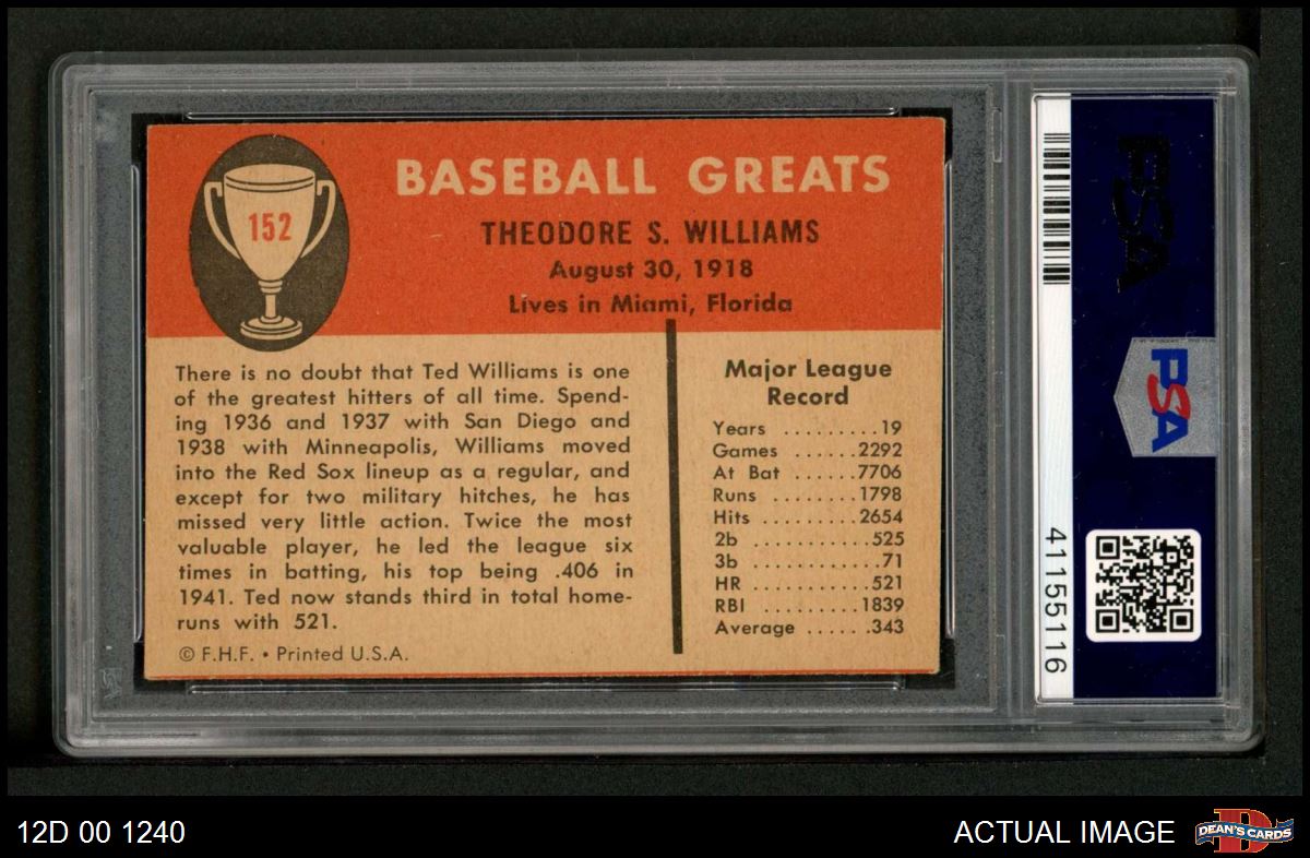 1961 Fleer #152 Ted Williams PSA 6 - EX/MT