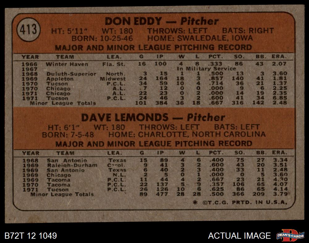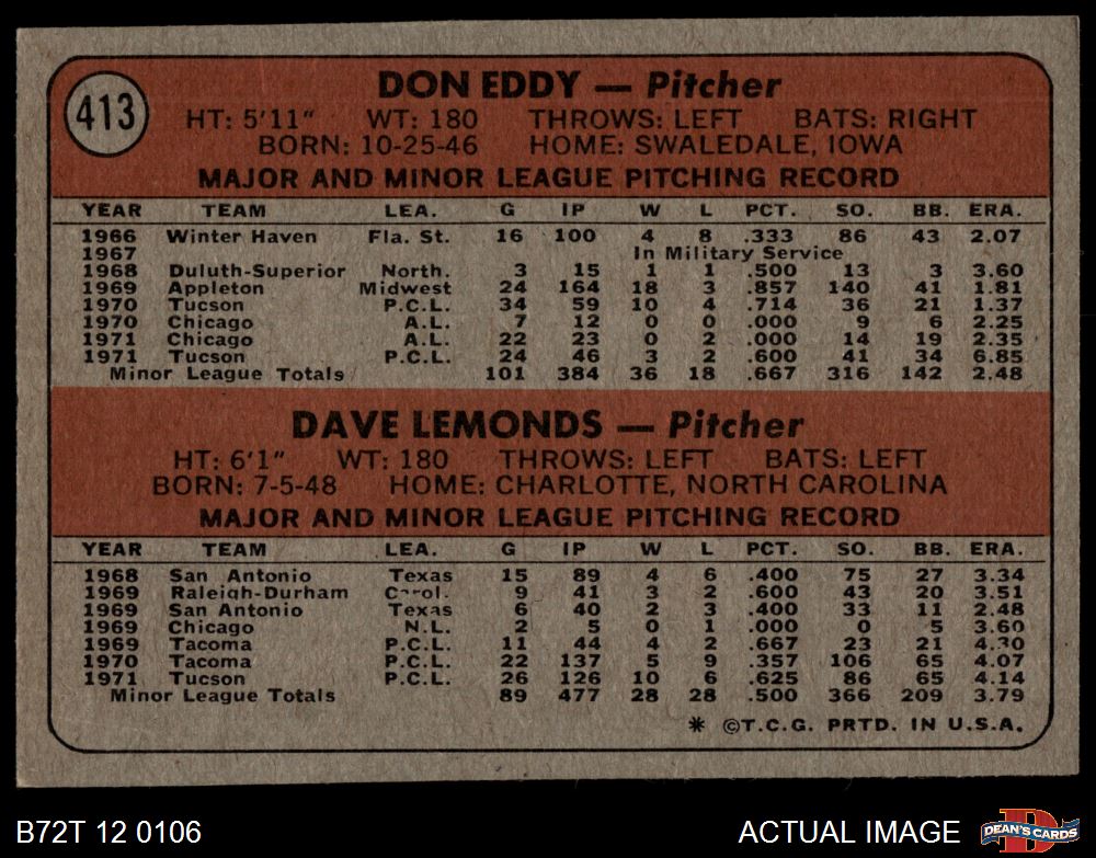 1972 Topps #413 - Don Eddy / Dave Lemonds White Sox Rookies 4 - VG/EX