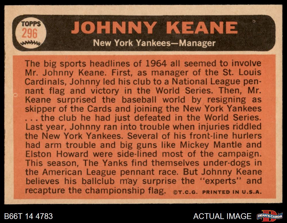 1966 Topps #296 Johnny Keane 5 - EX