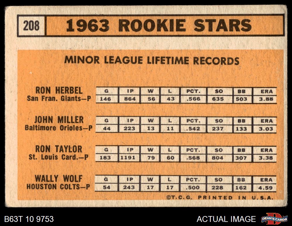 1963 Topps #208 - Ron Herbel / John Miller / Wally Wolf / Ron Taylor Rookie Stars 3 - VG