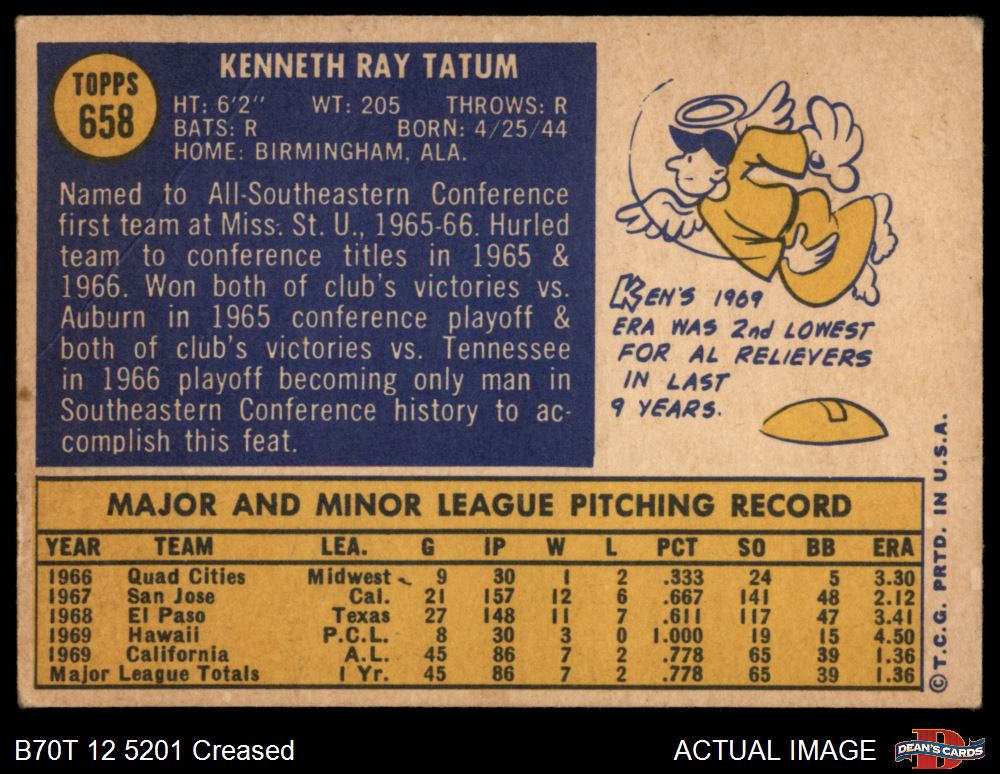 1970 Topps #658 Ken Tatum