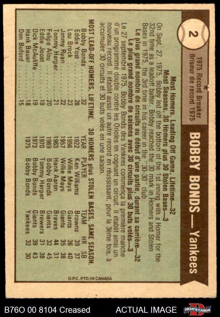 1976 O-Pee-Chee #2 - Bobby Bonds Record Breaker 3 - VG