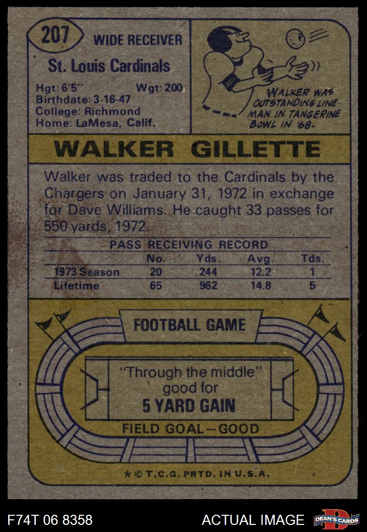 1974 Topps #207 Walker Gillette 5 - EX