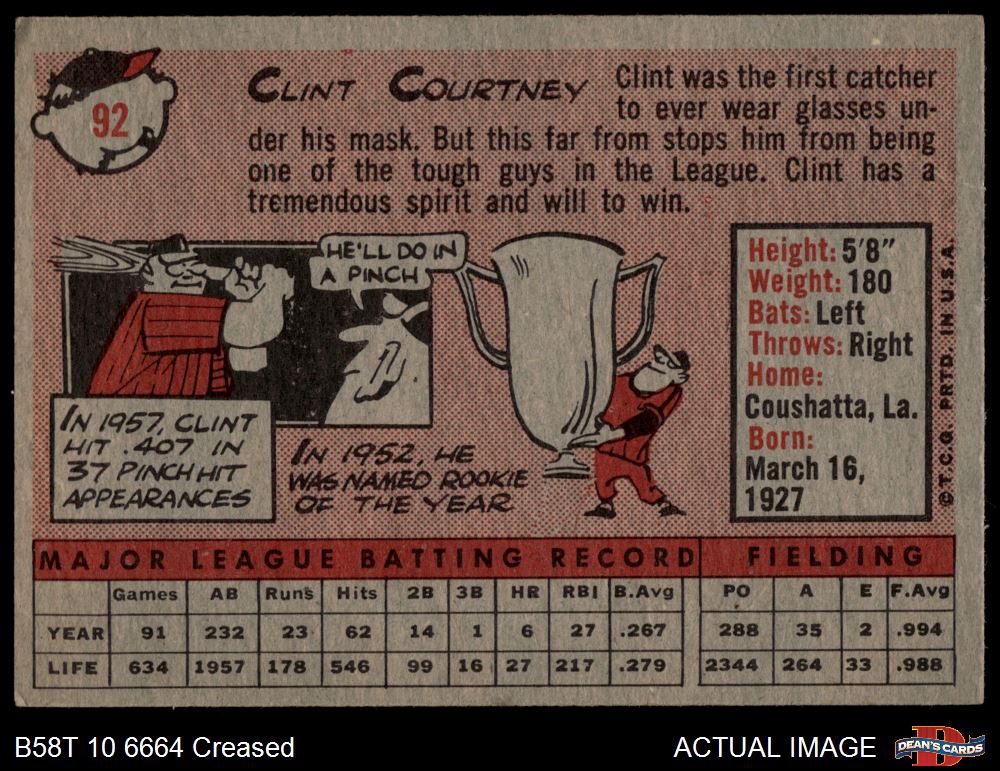 1958 Topps #92 WN Clint Courtney 3 - VG
