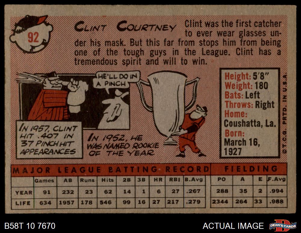 1958 Topps #92 WN Clint Courtney 5 - EX