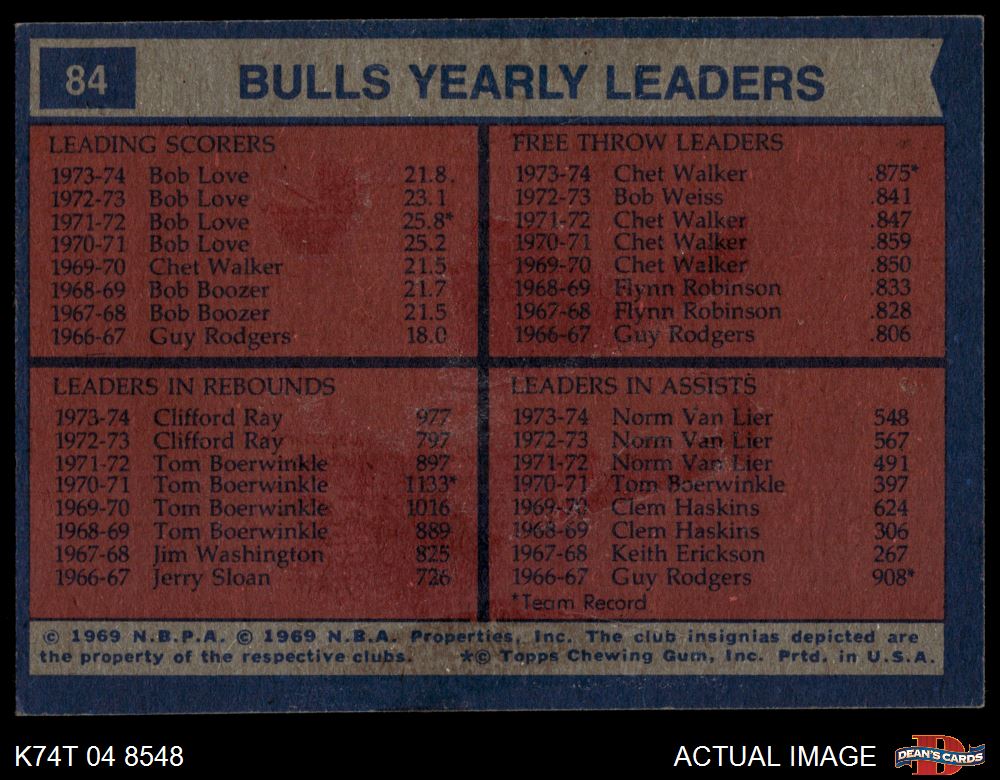 1974 Topps #84 - Bob Love / Norm Van Lier / Chet Walker/ Clifford Ray Bulls Leaders 4 - VG/EX