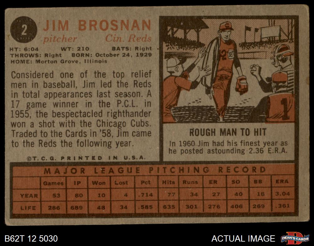 1962 Topps #2 Jim Brosnan 2 - GOOD