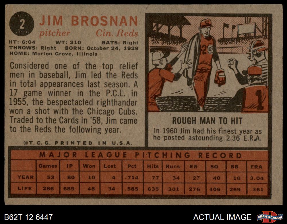 1962 Topps #2 Jim Brosnan 5.5 - EX+