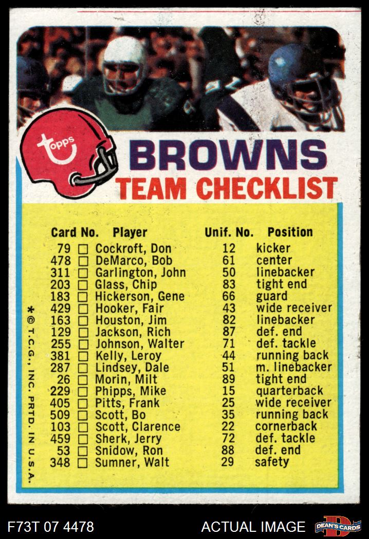 1973 Topps Football Cards (11,994 available)1973 Topps Checklist Browns (8 available)