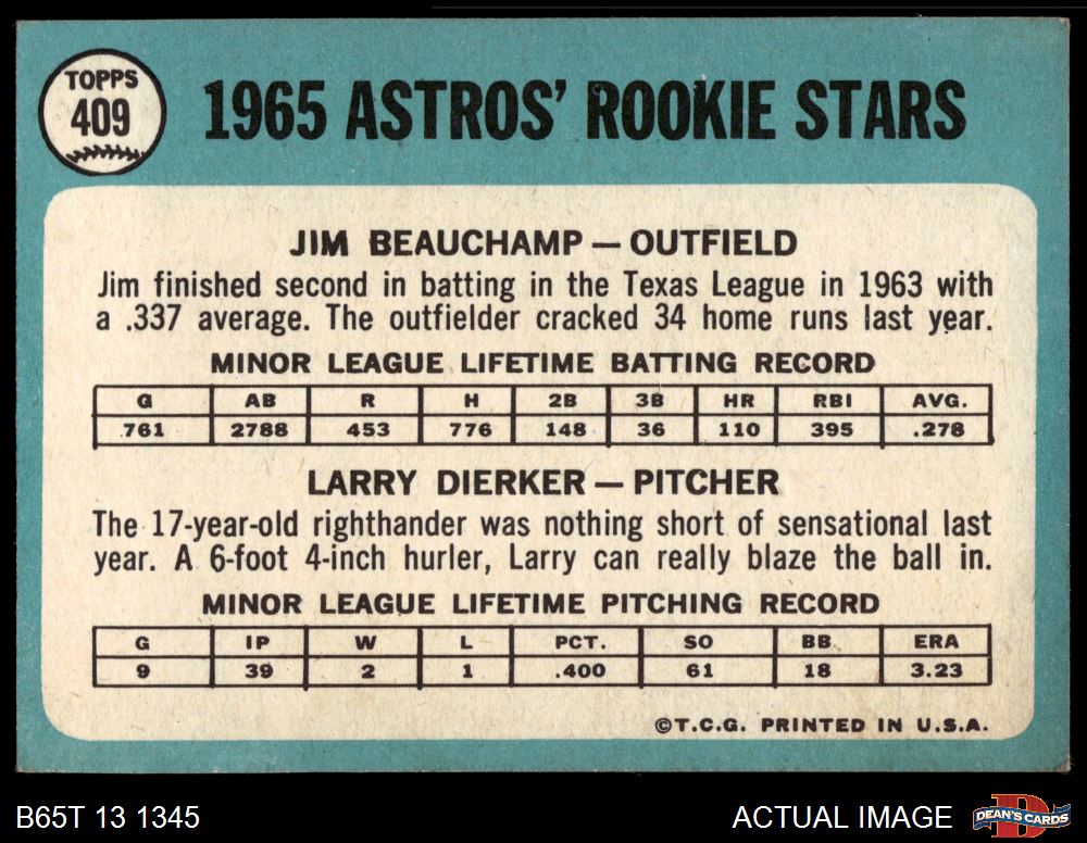 1965 Topps #409 - Larry Dierker / Jim Beauchamp Astros Rookies 4.5 - VG/EX+