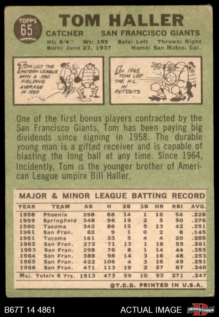 1967 Topps #65 Tom Haller Front Thumbnail