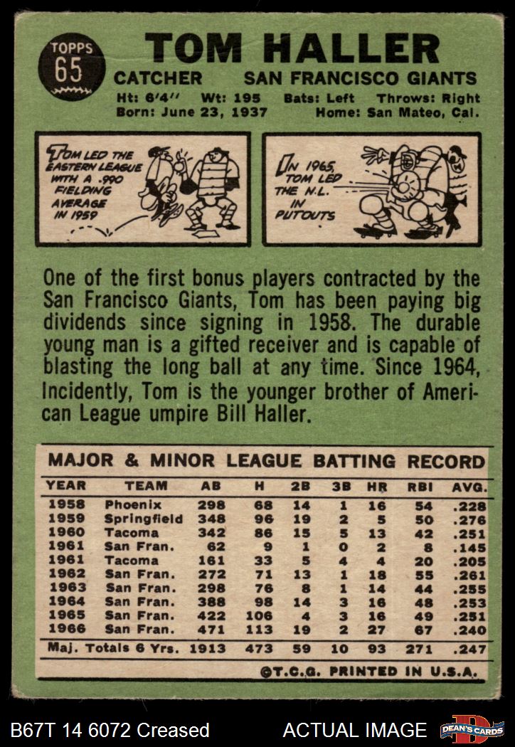 1967 Topps #65 Tom Haller 2 - GOOD