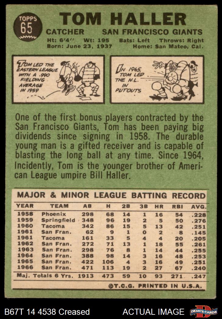 1967 Topps #65 Tom Haller 2.5 - GD+
