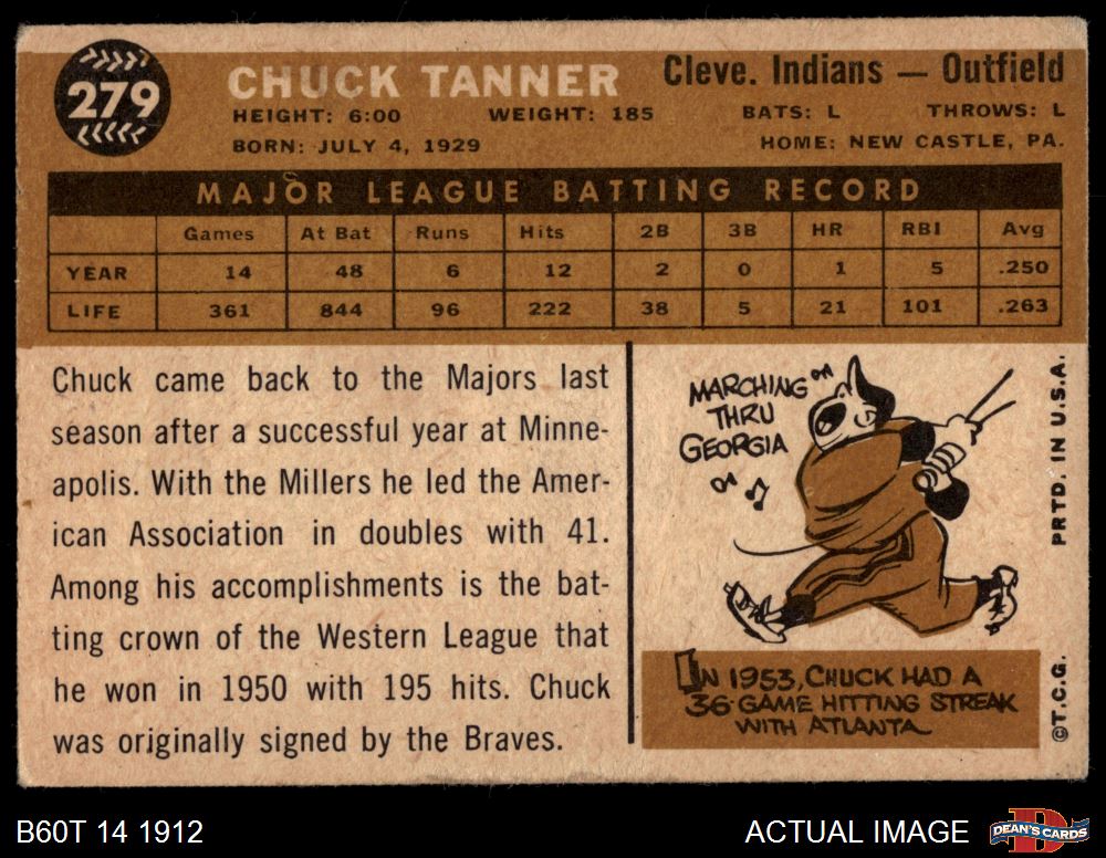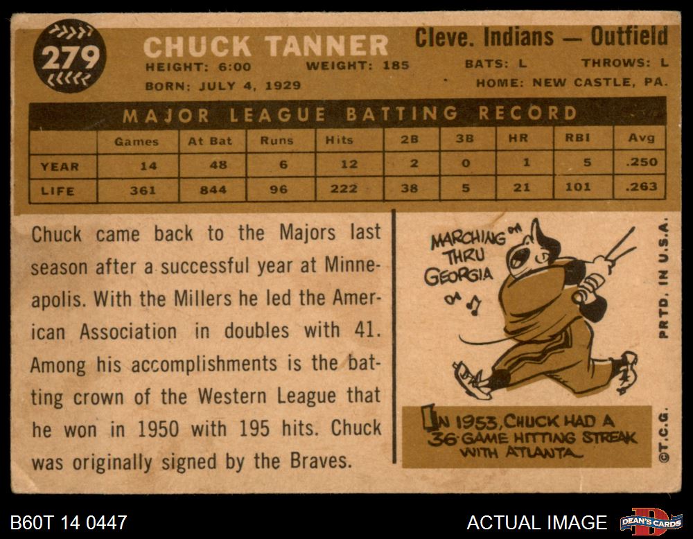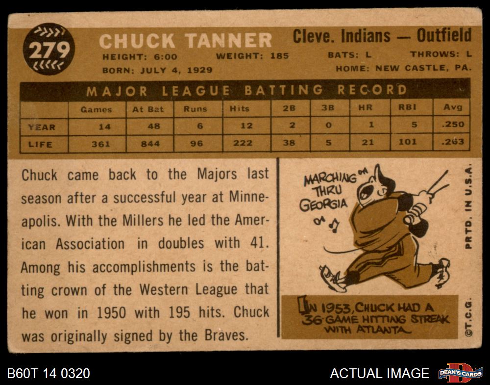 1960 Topps #279 Chuck Tanner 2 - GOOD