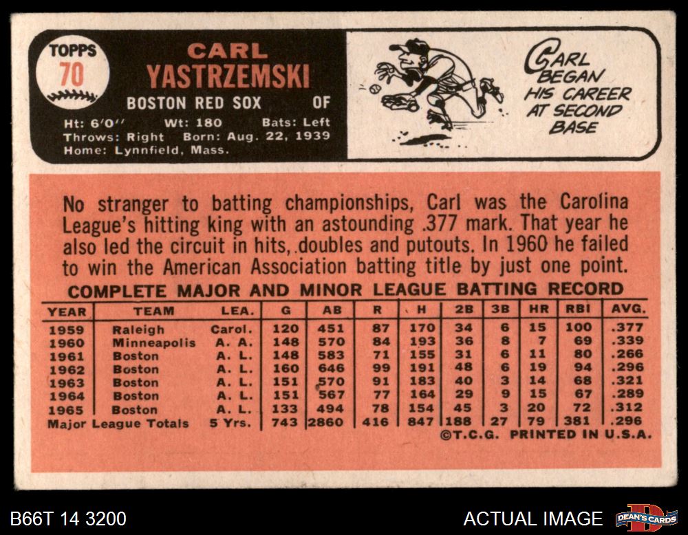 1966 Topps #70 Carl Yastrzemski 3 - VG