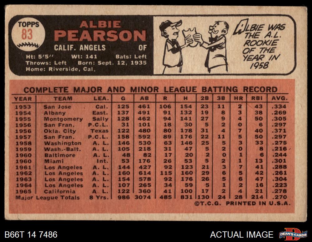 1966 Topps #83 Albie Pearson 1.5 - FAIR