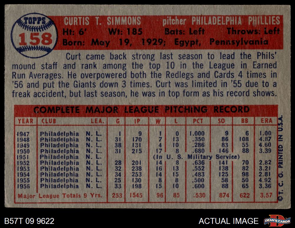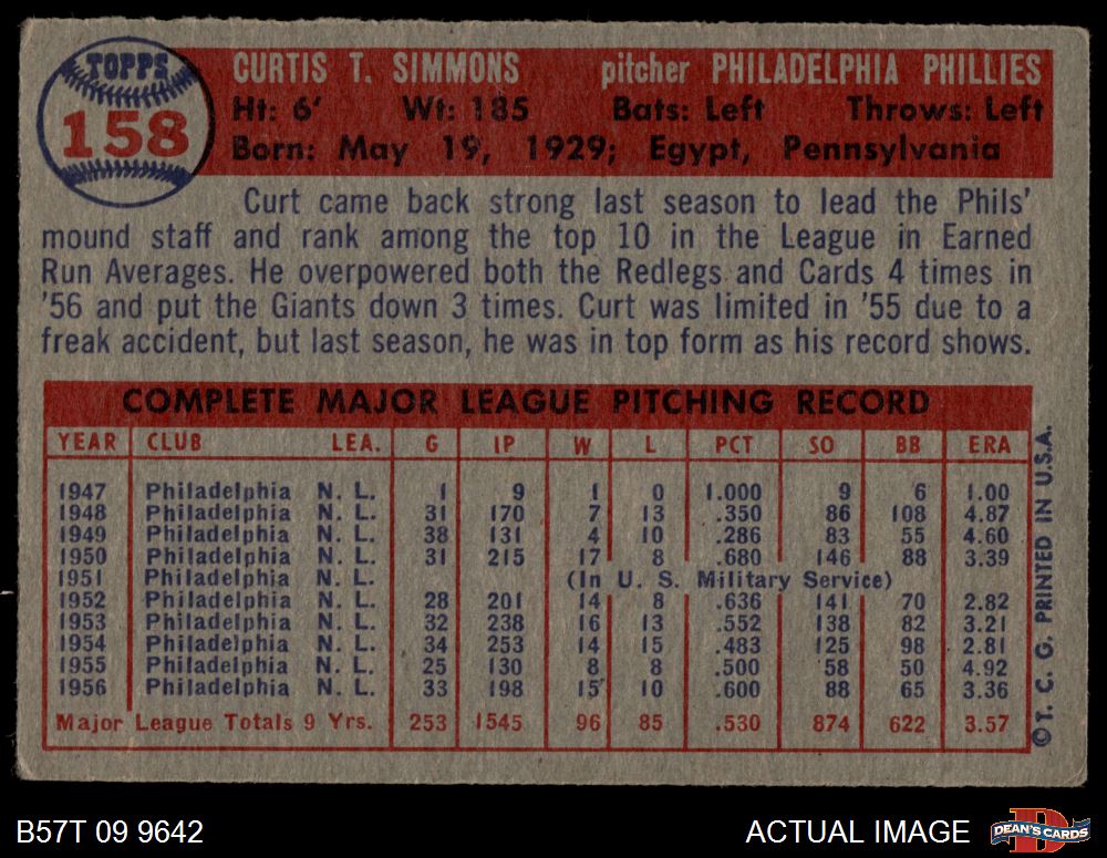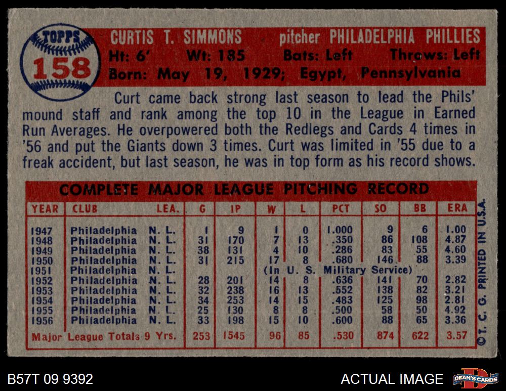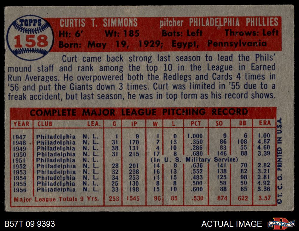 1957 Topps #158 Curt Simmons