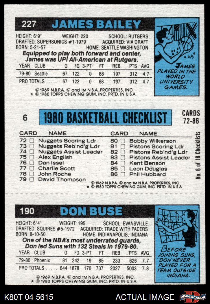 1980 Topps - Don Buse / Adrian Dantley / James Bailey 190 / 6 / 227 3 - VG