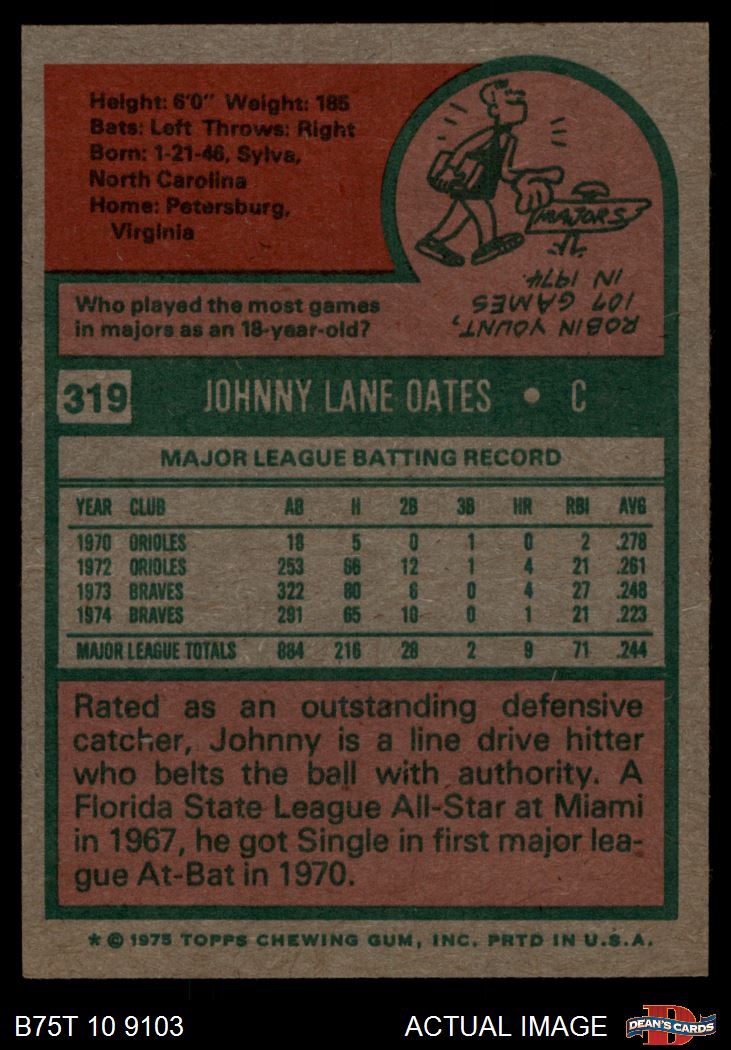 1975 Topps #319 Johnny Oates 6 - EX/MT