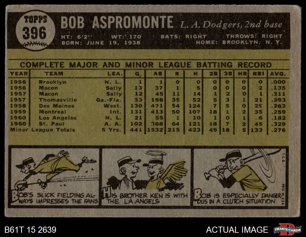 1961 Topps #396 Bob Aspromonte